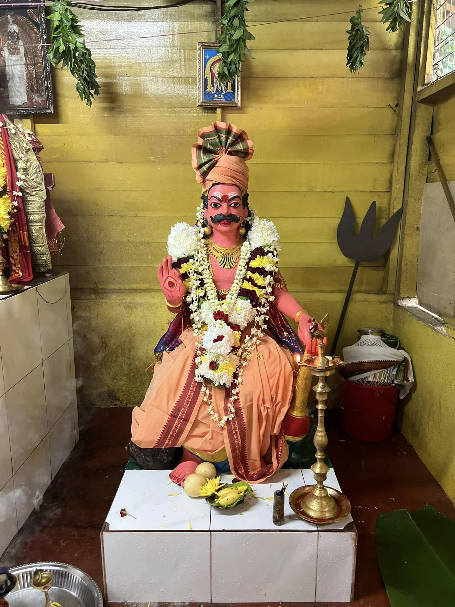 The Arulmigu Sri Muneeswarar Temple can be found in Menglembu, Perak. It was founded in 1933 by Indian estate workers who had migrated to Malaysia. The statue of their deity was transported from India and installed within a wooden structure. They revered Lord Muneeswarar as a guardian deity and sought his blessings for their welfare. In its early years, the practice of animal sacrifice was observed. However, in later years, the temple's new administration oversaw the construction of a larger temple, and the practice of animal sacrifice was discontinued.